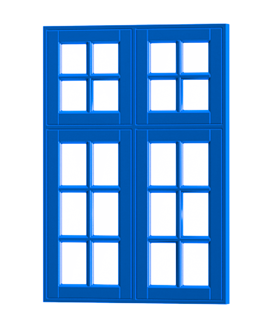 Palævinduer. Denne type vindue er også opdelt i felter via sprosser. Den har har minimum 4 rammer og minimum 1 lodret og 1 vandret sprosse i hver ramme. Palævinduer ses ofte på ældre huse som patriciervillaer og murermestervillaer.