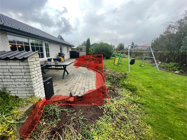 Vi vil gerne have vores terrasse udvidet og gjord rektangulært. Terrassen her følgend...