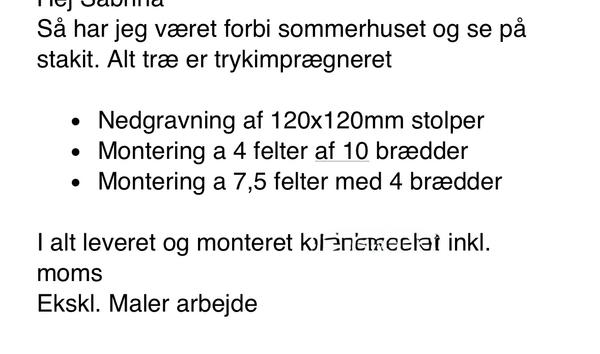 Vi skal have lavet stakit, på den del der mangler i vores sommerhus. Jeg har vedhæfte...