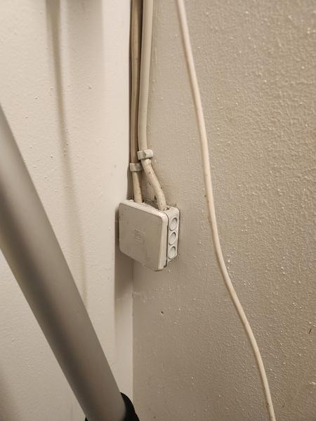 Installation af en Zaptec Go ladeboks på en mur på den modsatte side af eltavlen i et...