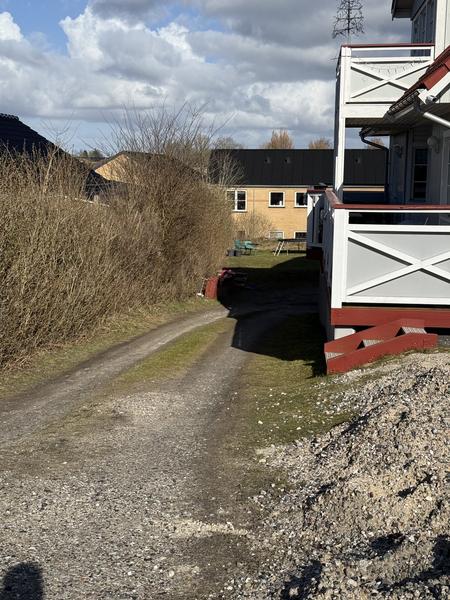 Indkørsel og forhave skal laves i fliser eller asfalt. Der er stabilt grus i forhave ...