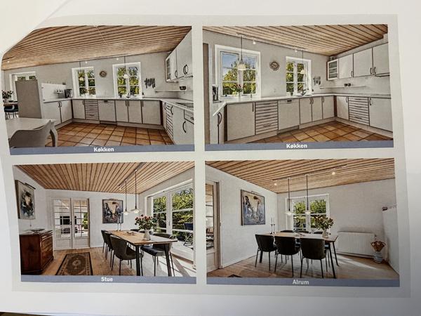 Vi har et køkken alrum hvor halvdelen af rummet er med klinker og gulvvarme, den ande...