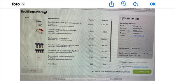 Opsætning af gulvvarmeshunt og fordeler til koldt og varm vand. Der skal laves en gul...