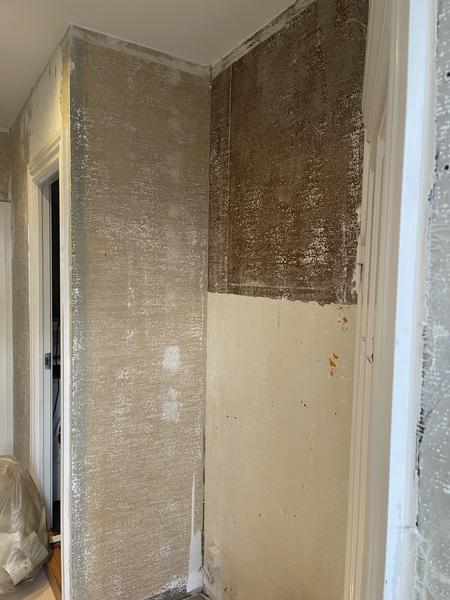 Jeg skal have fjernet savsmuldstapet, herefter fuldspartlet på alle vægge og til slut...