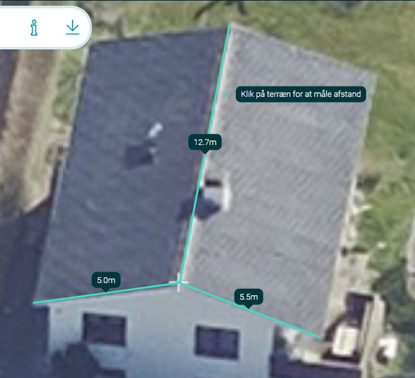 Boligen er 179m2 i grundplan. Taghældning på omkring 20-25 grader.