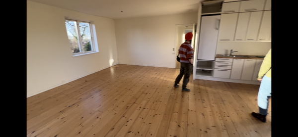 Vi skal installere et nyt køkken. Der skal laves afløb og trækkes vand. Bag den væg h...