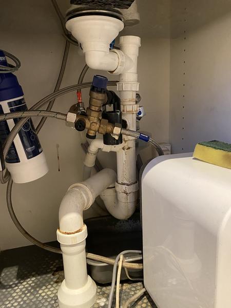 Utæt rør under køkkenvask Det skal tjekkes og udbedres Stophanen er bryggerset Til...