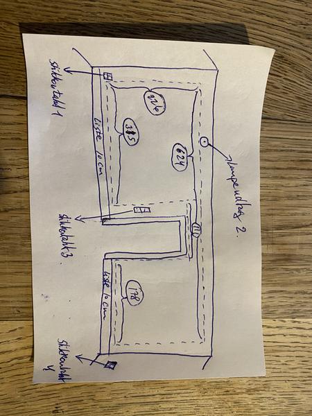 Der er en hjemmelavet tegning med mål vedhæftet