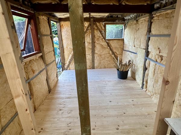 Vi har et træskur (5,5m x 2,5m), som vi gerne vil have gipsplader fastgjort til vægge...