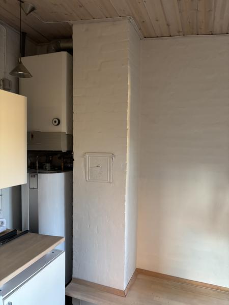 Fyret sidder pt. i en 65 cm åbning mellem skorsten og mur. Skorstenen påtænkes fjernet ifbm. projektet. (Oplys, om det er et krav.)
