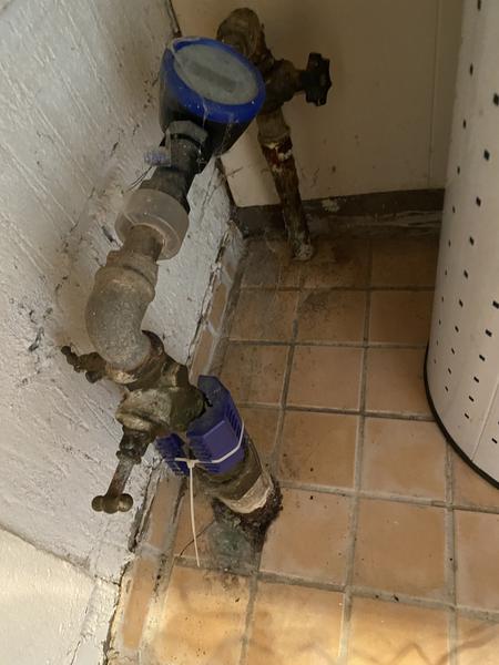 Jeg har et vandrør der skal skiftes. Det er indføringsrøret der skal skiftes samt lukkeventil. Røret kommer ind nede fra gulvet og det kunne godt se ud som om at der er muret nyt gulv rundt om bøsningen. Efter 30-40 cm inklusiv lukkeventil tager røret en drejning og fortsætter ind i et af køkkenskabene og der skal også skiftes dette stykke samt lukkeventilen på den anden side af vandmåleren.