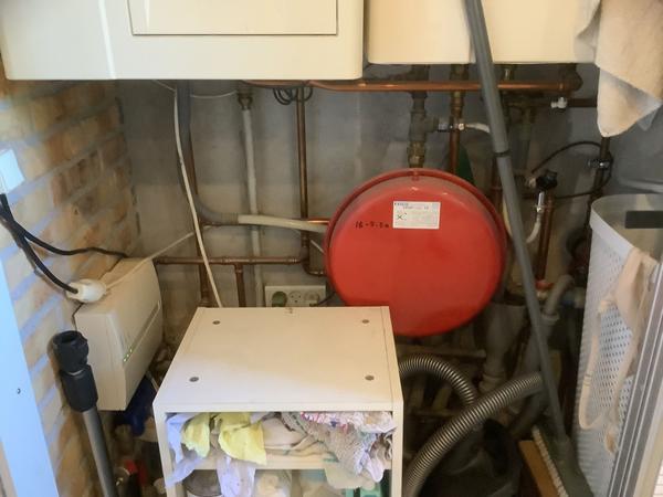 Gammel varmtvandsbeholder skal udskiftes til nyere model, da den gamle er begyndt at ...