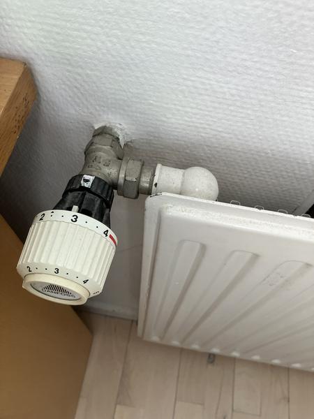 Radiator: Radiator flyttes mod højre ca. 1,5 m. Rør indbygget i væg - skal løses uden at bryde gulv op hvis muligt. Optionspris på ny radiator og termostat ønskes