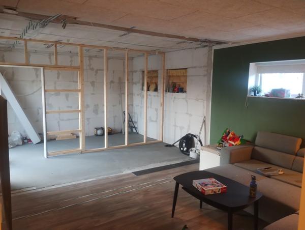 Vi har fået hævet loftet i vores køkken til kip. Der skal nu spartles, tapetseres, ma...