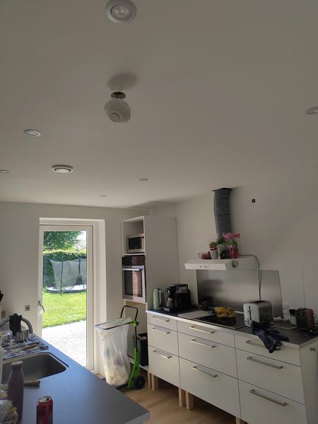 På billederne kan I se begge rum, og der skal kun laves de samme udtræk til el/ventilation som der allerede er i loftet. Jeg har også vedhæftet plantegning med alle mål. De røde cirkler er de rum, hvor der skal monteres lofter.