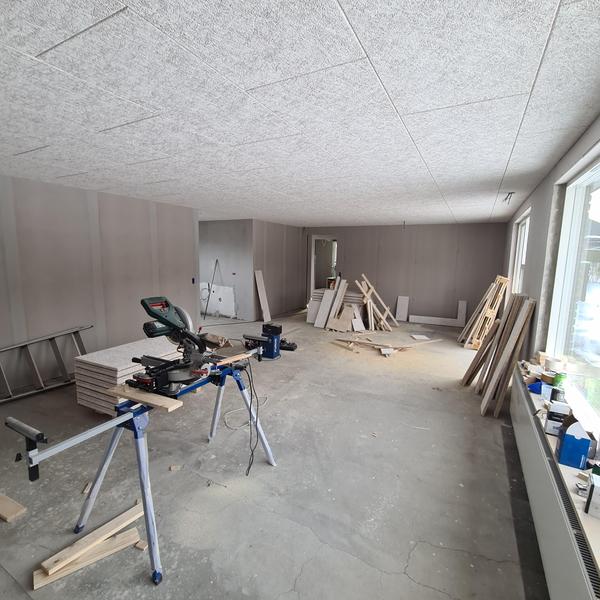 Vi er i gang med at renovere. alle indvendige vægge er blevet beklædt med gips, alle ...