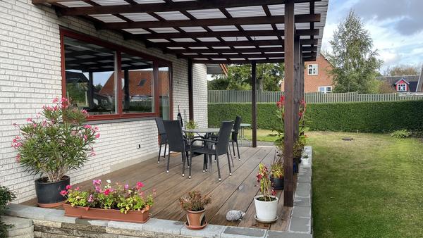 Vi ønsker at få udført en forlængelse af det eksisterende tag over vores træterrasse ...