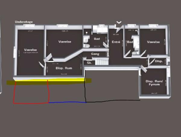 Ca. 8 m omfangsdræn. Huset er fra 50´erne. Kælderen er delvis under jord.