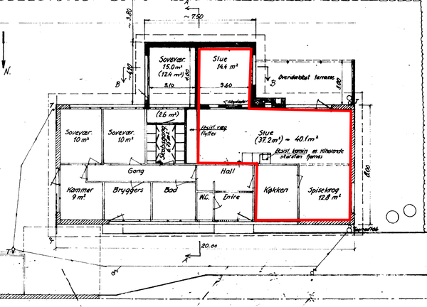 Flydespartel på ca 72 m2 gulv. Ca 220 mm gennemsnit over det hele.