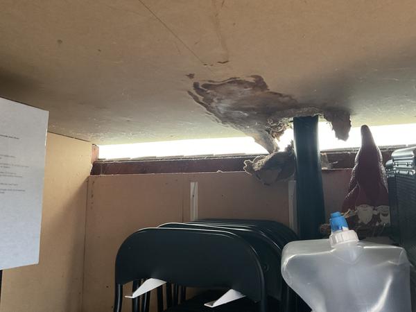 Skifte af loft i skur og muligvis nyt tagpap på taget. Ikke sikkert hele loftet behøv...