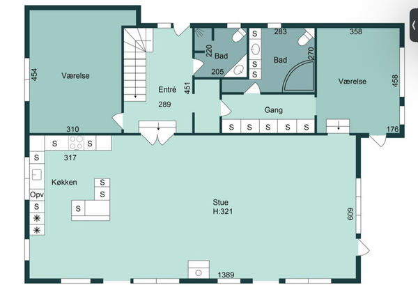 Pris på maling af alle vægge i et hus på 180 kvm. Jeg vedhæfter plantegning. Der er l...