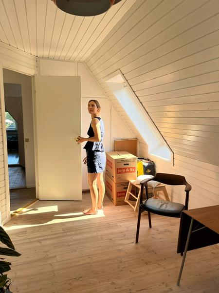 Vi har netop købt et hus, hvor der lige nu er et oprindeligt værelse, som er delt op i to med en skillevæg og et par døre. Den skillevæg vil vi gerne fjerne, så det bliver ét stort rum. Det skulle gerne være en væg, der "bare" står ovenpå gulvet, så det skulle en relativt simpel opgave at fjerne den - ifølge mægleren ;) Jeg har vedhæftet billeder af de to rum samt en plantegning, så man kan se størrelsen (samt hvor den oprindelige dør har været).