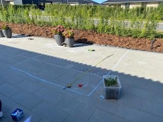 Opførelse af haveskur med betonfliser
