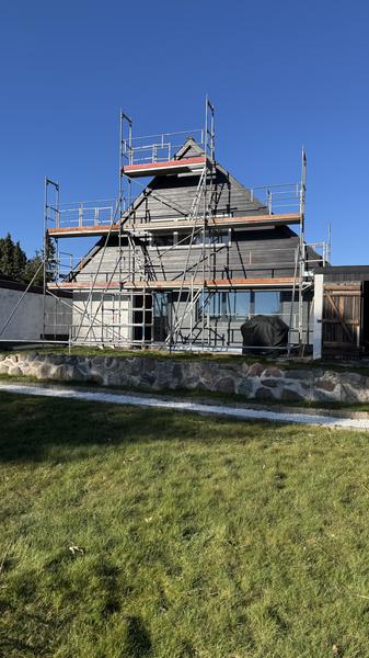 Skift af træ facade (de grå træ) både på forside og bagside af huset til vedligeholde...