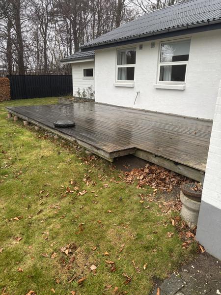 Jeg ønsker tilbud på en træterrasse på 5,41 bred og ca. 1,5-2 m dyb. Den eksisterende...