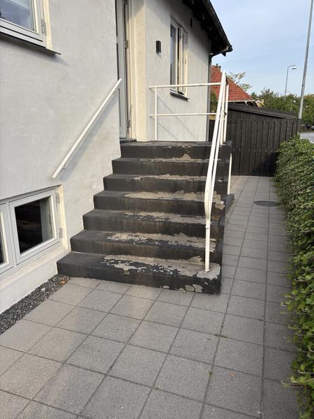 Tilbud på pudsning/ordne trappen til hoveddøren og trappen ned til kælder.