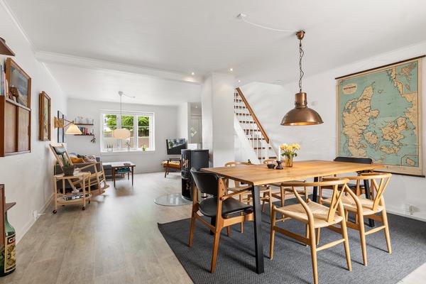 Male et rækkehus ud mod vejen; Det er en pusset hus som savner opfriskning af maling. Den skal bevare den samme farve.