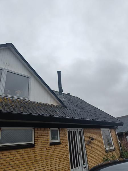 Stålskorstensrør er utæt. Brændeovn er fjernet men skorstensrør bevaret i overetagen....