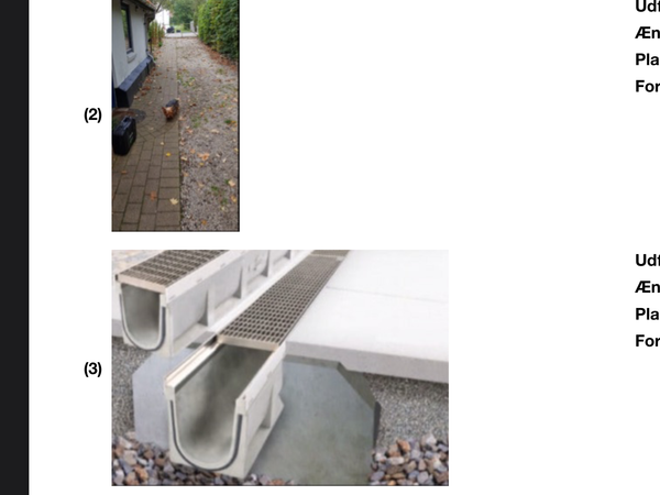 Ønsker tilbud udgravning til 3 nye nedløb og koblet til brønd, tegnet med blåt på bi...