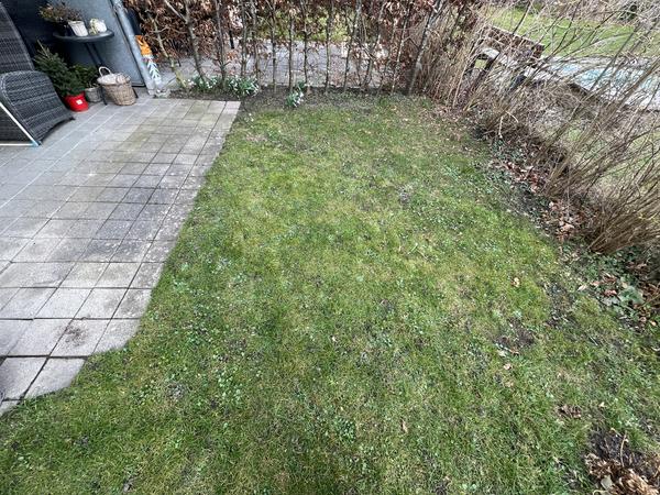 En lille del af fliserne er lagt, men er sunket og ujævne, hvorfor vi ønsker 6 rækker med 17 fliser (20x20cm) omlagt - disse fliser tager vi selv op inden I kommer, så I blot skal lægge dem på ny samt lægge nye fliser som udvidelse af terrassen.