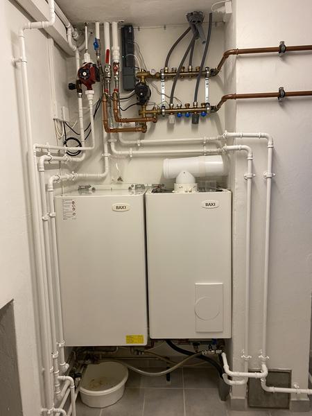 Den nye skal være placeret som eksisterende gaskedel. Det er et BAXI type WGB 15-C. Nuværende installation ses på billedet