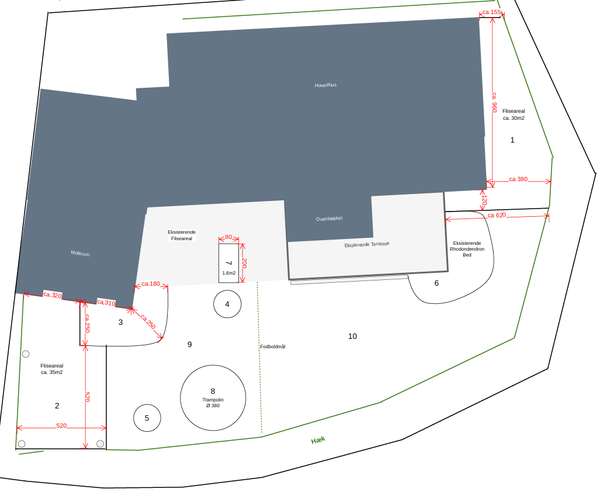 - Anlægge en fliseterrasse i have i halvcirkel (radius 2 meter, diameter 4 meter, ca....