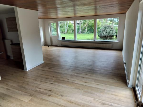 Vi har fjernet savsmuldstapet i vores stue, inklusiv både tapet og klister. Nu ønsker...