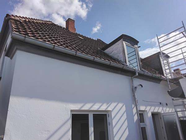 Udskiftning af kvistbeklædning op af flunkerne med træ beklædning Der skal laves ny inddækning mod tagsten med waka flex Udskiftning af tagrende 24 meter (stål) rendejern bliver genbrugt 3 nedløb