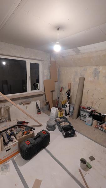 Der kommer murer i denne uge eller næste og pudser alle væggene op, så de klar til til spartling.