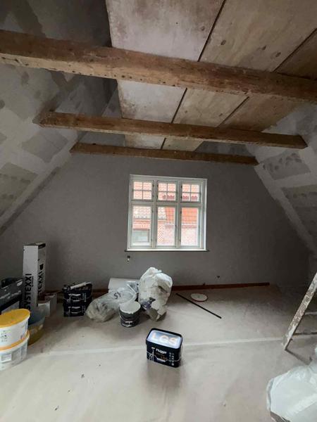 Maleropgave. Ny 1.sal med skrå vægge skal spatles, filtes og males. Kan fuge af indve...