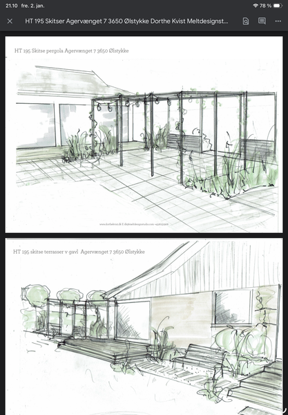 Opbygning af cirka 16 kvm træterrasse/pergola inklusiv vægge på 2 sider (som på fotoe...