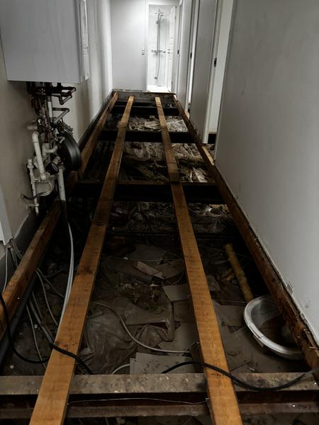 Jeg ønsker at modtage to forskellige tilbud på VVS-arbejde i forbindelse med en vandskade. Skadeservice og tømrer har fjernet hele gulvkonstruktionen, så alle installationer er fuldt tilgængelige.