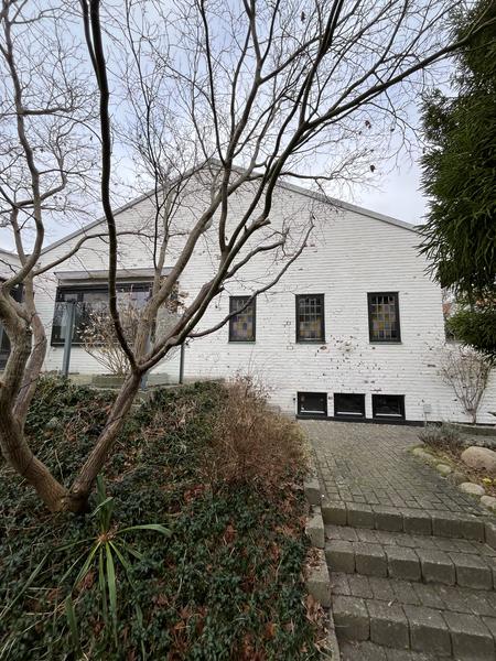 Ejendommen går op til 2. sal. Der er mursten som er pudses op.