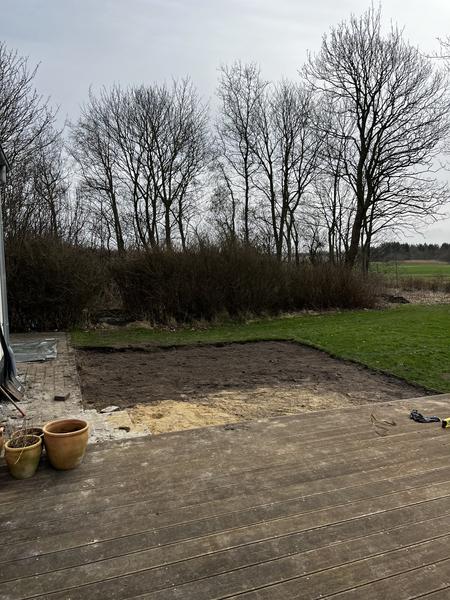 Vi vil gerne have en ny terrasse ved vores sommerhus, L 7,50 B 4,60. (ca) Belægning ...