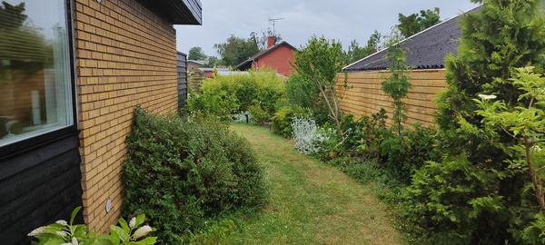 Bygning af hegn på tværs af hus og eksisterende hegn. Klinkbeklædning på begge sider og med dør/låge i midten. 180 cm højt. Ca. 4 meter i længde.