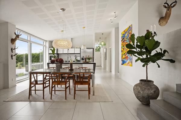 Hus 215 kvm. Skal males hvidt ved indflytning, så hus er tomt. Der er højt til loftet...