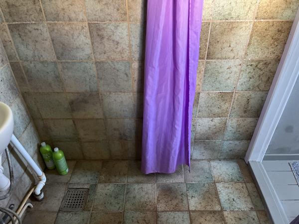Badeværelse fra 2000. Vi ønsker nye klinker og inventar, samt brus. Klinker kun i bad...