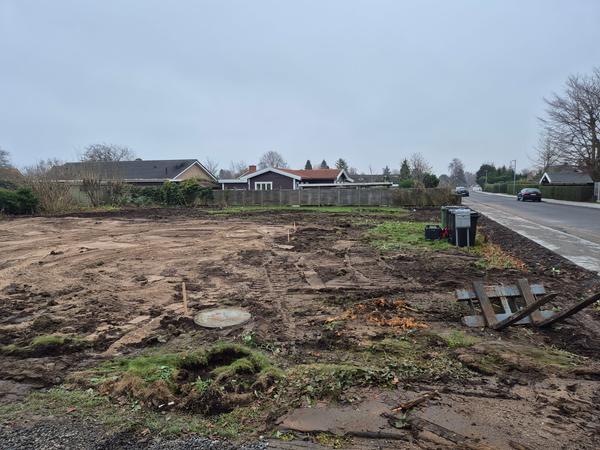Der skal etableres afvandingsdræn på ca 3 meter. Der er nedløbsbrønd som det kan kobl...