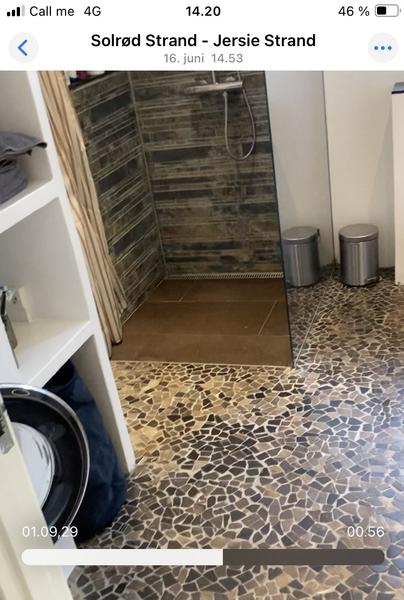 Vi afmonterer selv møbler, toilet og river selv gamle fliser ned. Vi ønsker hjælp til opsætning af fliser, samt montering af unidrain afløb i begge brusekabiner. På det "store" toilet skal vi ligeledes have flyttet toilettet en lille smule.