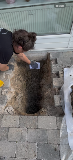 To huller a ca. 15cm, men "smuldrede", skal mures op nede fra krybekælder. Krybekælde...